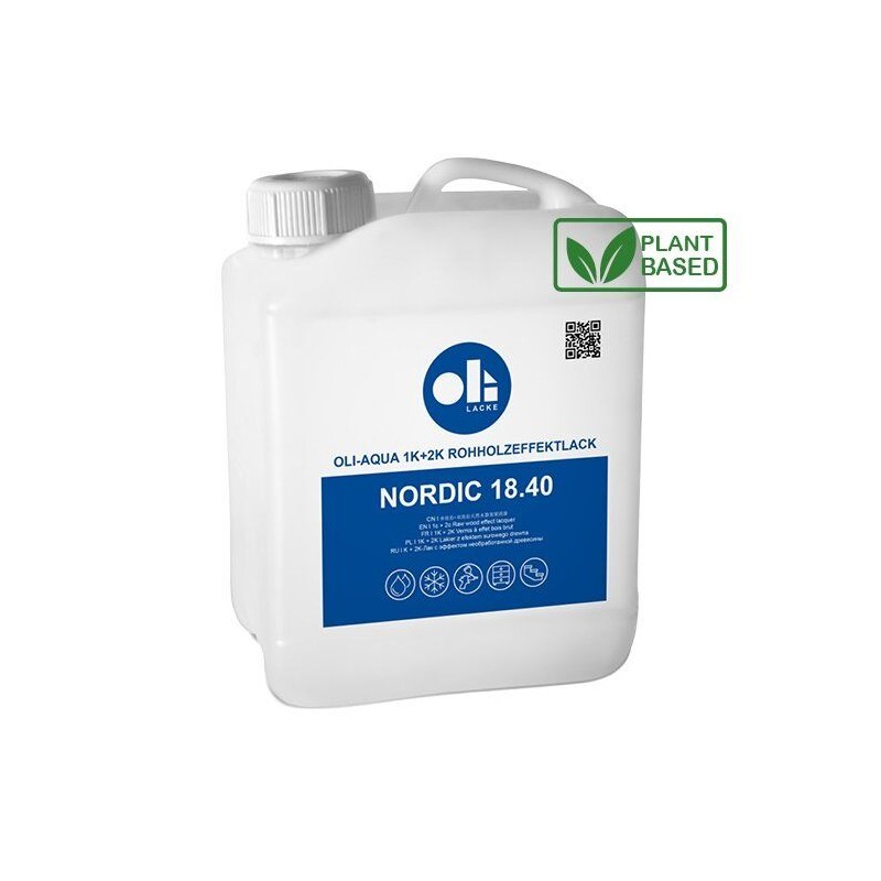 Der OLI-AQUA NORDIC 18.40 ist sehr festkörperreich (>40%), lässt sich unkompliziert streichen, rollen oder spritzen und ganz einfach schleifen. In der Nassphase entsteht ein milchiger Schleier, der im Zuge der Trocknung vollständig verschwindet und für einen außergewöhnlichen Rohholzeffekt sorgt.